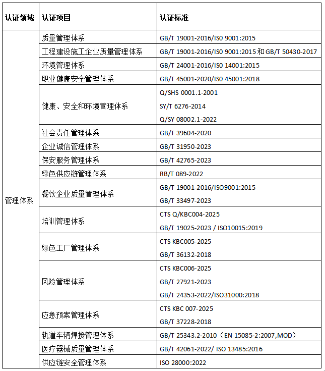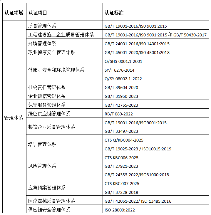 认证项目